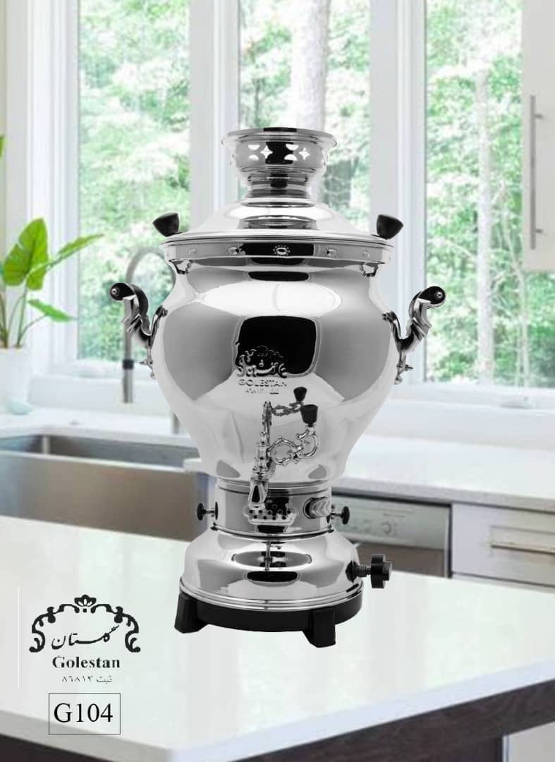 سماور گازی ۱۰ لیتر پایه باکالیت خمره ای دسته کروم ضخامت ورق ۸ میل گارانتی شرکتی ۱۸ ماهه